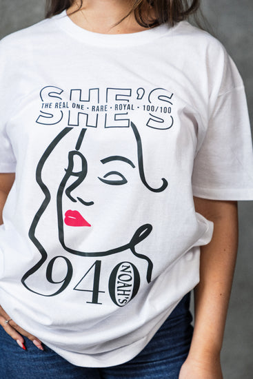 הקו הנקי של האיור, השפתיים האדומות והטיפוגרפיה האלגנטית כולם יחד מייצרים עיצוב שלא רק נלבש, אלא מורגש. כשאת לובשת אותה, את לא רק מתלבשת את משדרת לעולם שאת נדירה, מלכותית, ושאת יודעת את הערך שלך.