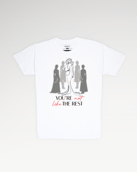על חזית החולצה מתנוסס עיצוב יוקרתי ומלא נוכחות, בהשראת הפסוק התנכ"י "רבות בנות עשו חיל, ואת עלית על כולנה". דמות נשית אלגנטית ובטוחה בעצמה ניצבת במרכז, כשסביבה נראות דמויות אחרות ברקע מטושטשות, עדינות, נמוגות כדי להדגיש את הייחודיות והעליונות השקטה שלה. לצידה, בגימטריה אלגנטית ומעודנת: 2618 החותם הרוחני שמעניק לעיצוב עוצמה נוספת.