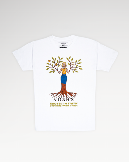 על חזית החולצה מתנוסס עיצוב עוצמתי של דמות נשית שמושרשת עמוק באדמה ושולחת ענפים מלאי חיים לשמיים. השורשים מסמלים יציבות ואמונה, בעוד הענפים מבטאים פריחה, התרחבות וחן. זהו עיצוב שמספר סיפור על כוח פנימי, על שורשים שלא מתערערים גם מול רוחות, ועל יכולת לצמוח ולהאיר לכל עבר.