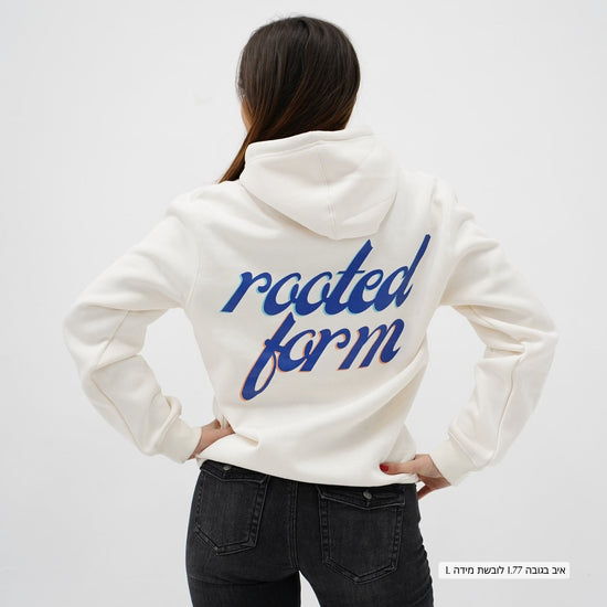 החזית שומרת על מראה מינימליסטי, הגב מוסיף עומק ואמירה עם הכיתוב Rooted Form שמבטא יציבות וחיבור לעצמך. הקפוצ'ון יושב טבעי ונכון על הגוף, הבד מרגיש איכותי ומחמם, והלוק נשאר נקי וחד. פריט שנראה נכון בכל סיטואציה ומשתלב טבעי עם כל לוק חורפי, בלי צורך להסביר את עצמו.